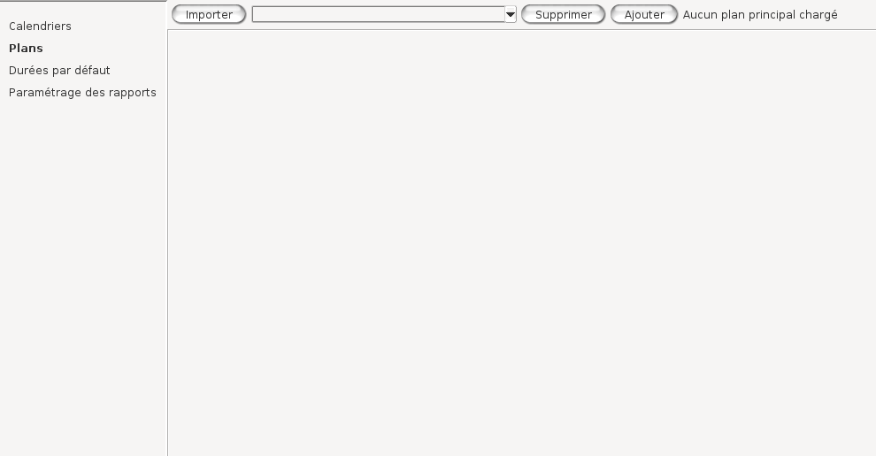 De base la liste des plans détaillés est vide. L'appui sur le bouton “Ajouter” permet d'importer des plans détaillés.