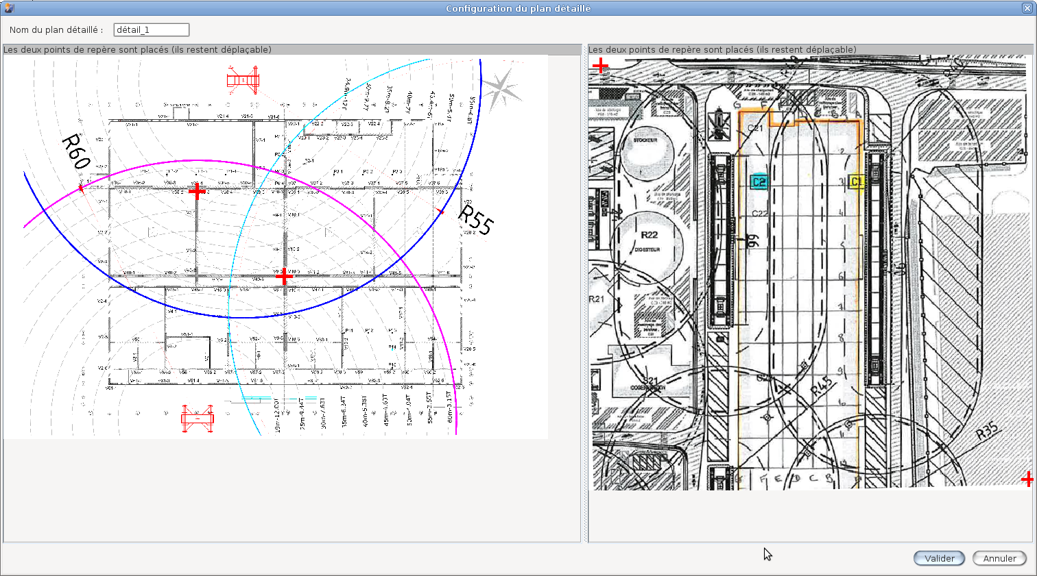 Pour permettre de placer le plan détaillé sur le plan principal, deux points sont à placer sur les deux plans.